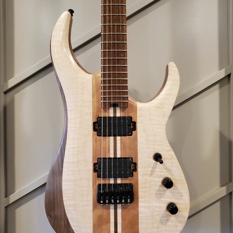 A guitar based on the Mach 1 design, crafted with wood sourced from the iconic Purdue University's Mackey Arena floor.